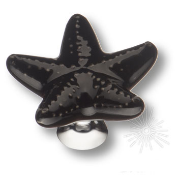Ручка кнопка STAR 007, материал Замак Керамика, цвет Черный, отделка Керамика Хром, 25*d=40/15 мм